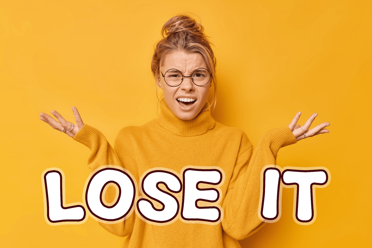 ではここからは、”lose it”を意味別に深掘りしていきましょう。Lose itというイディオムは、「感情のコントロールを失う」という意味です。その他にも、「我を失う」「カッとなる」なんて訳し方もできるでしょう。場合によっては「キレる」もしっくりくるかもしれません。