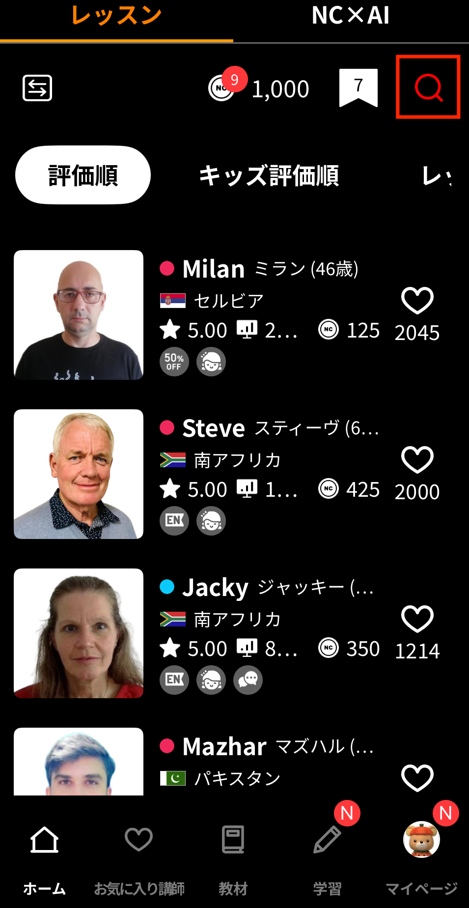 はい、あります。受講したい教材(レッスン)の「教材バッジ」を持っている講師を選ぶ必要があります。
