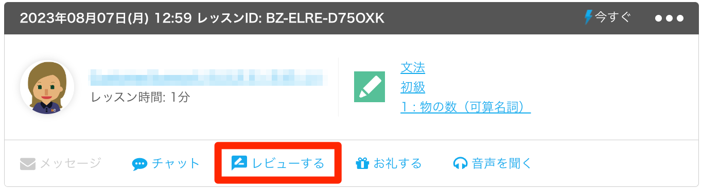 現在、あなたは他の講師とレッスン中のため、レッスンできません。