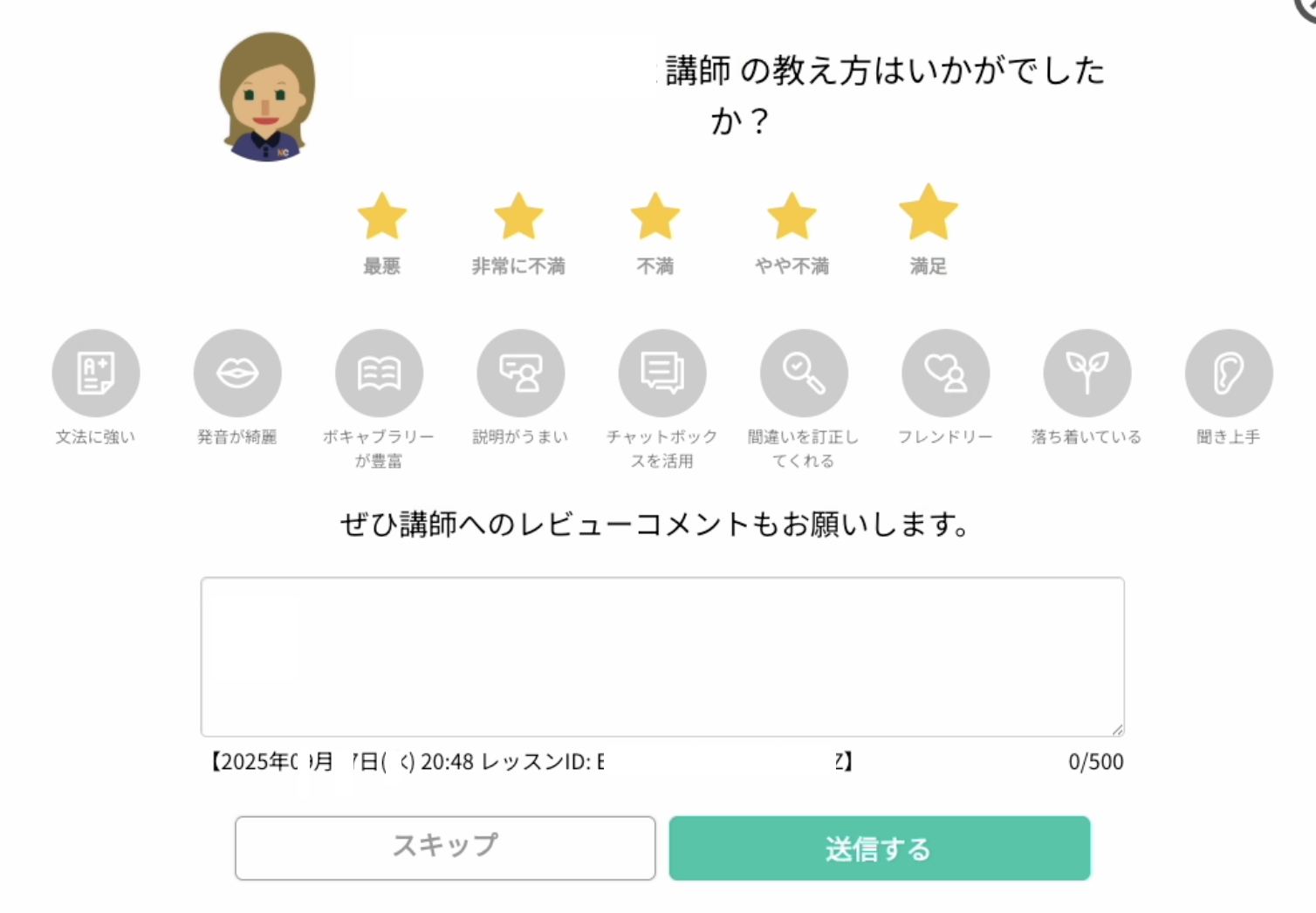 レッスンの継続をご希望の場合は、講師の通信状況改善まで