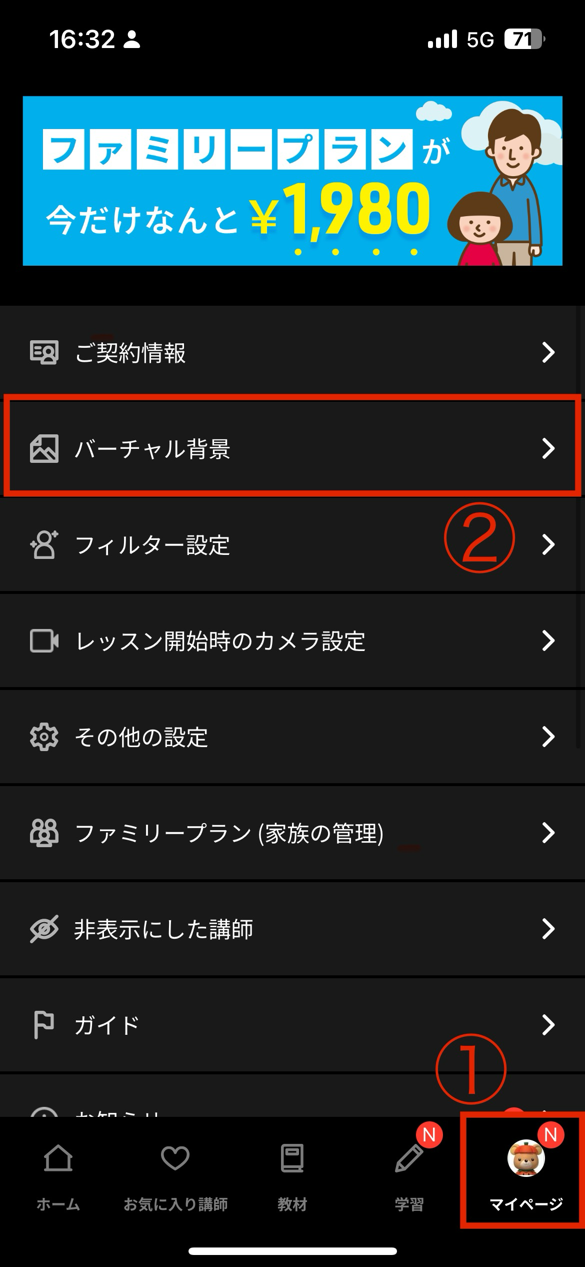 レッスンを受講できません。以下のご利用再開方法をご確認ください。