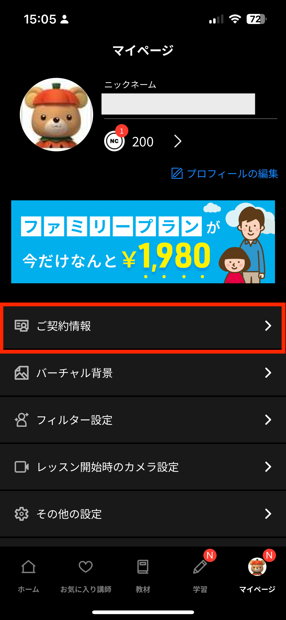 引き続き、レッスンのご利用を希望される場合は、以下より契約プランの変更をお願いします。