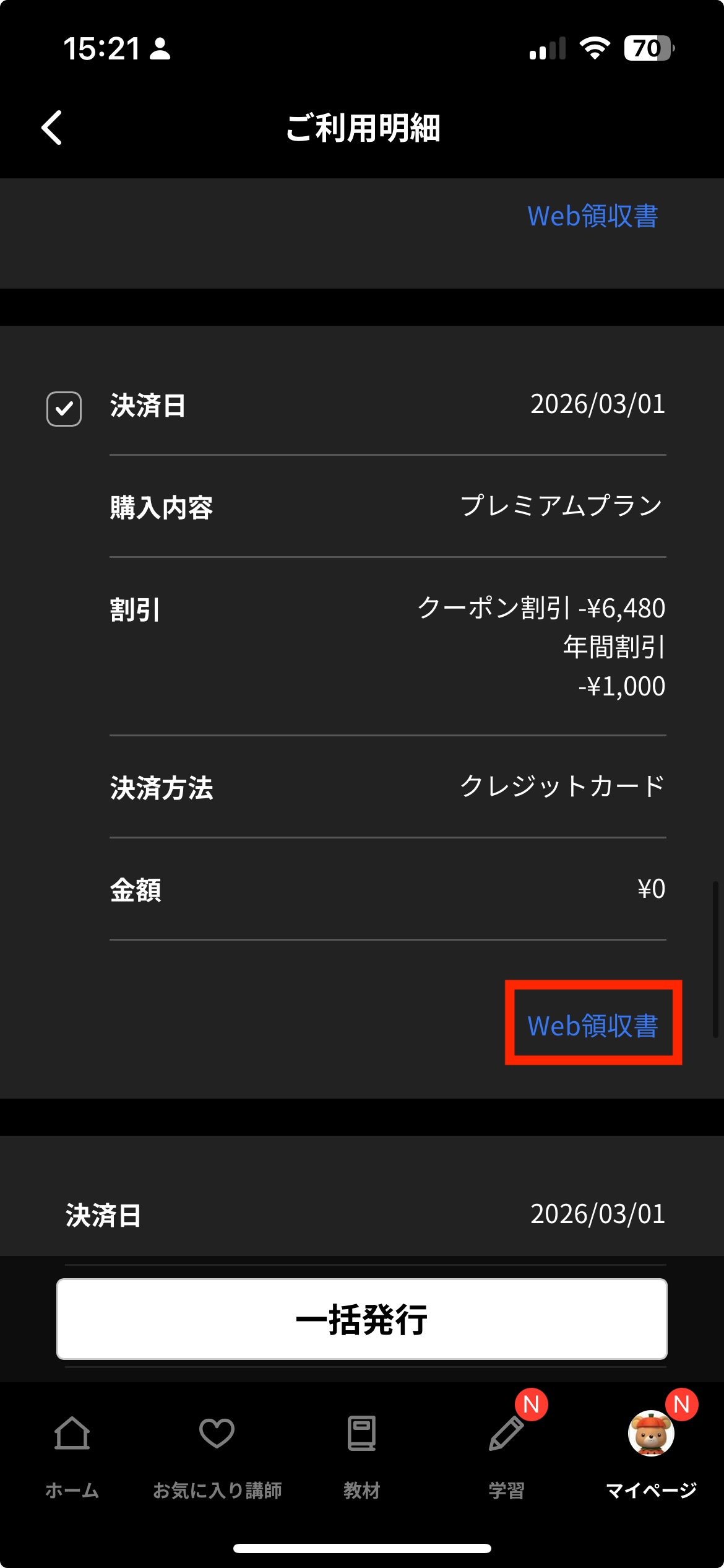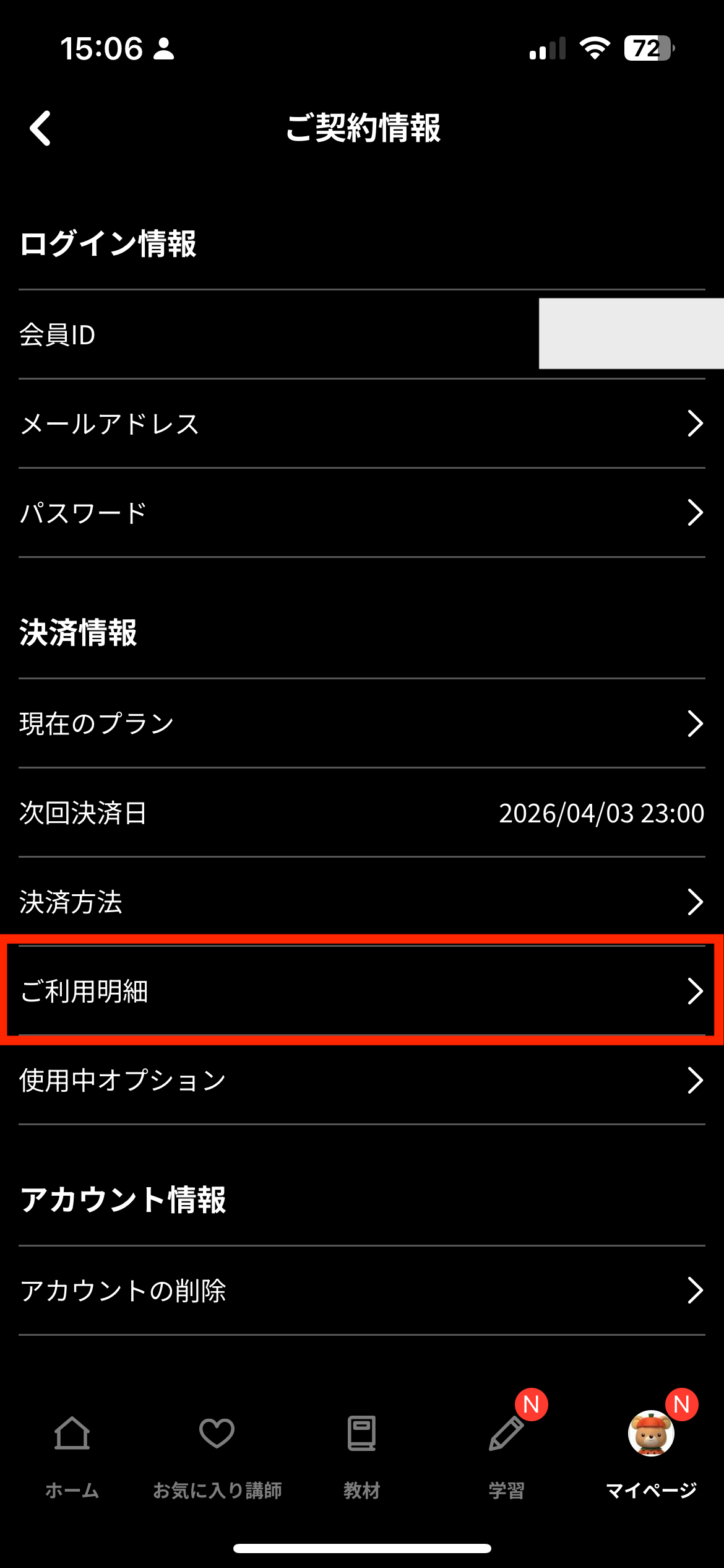 お支払い情報をご確認ください。