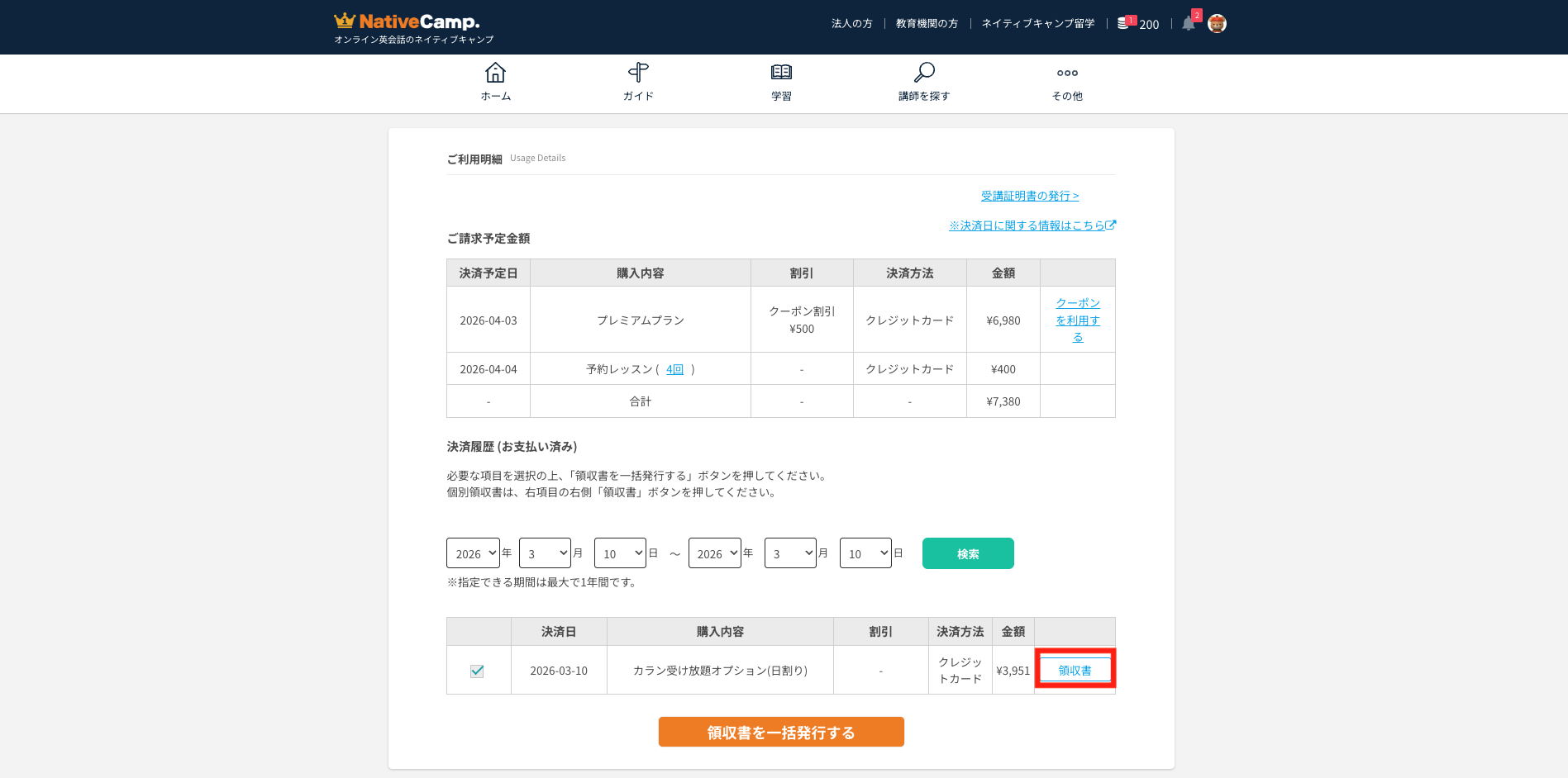学生無料キャンペーンオプションへの再申請をご希望の場合、次回決済日までにお手続きいただきますようお願いいたします。