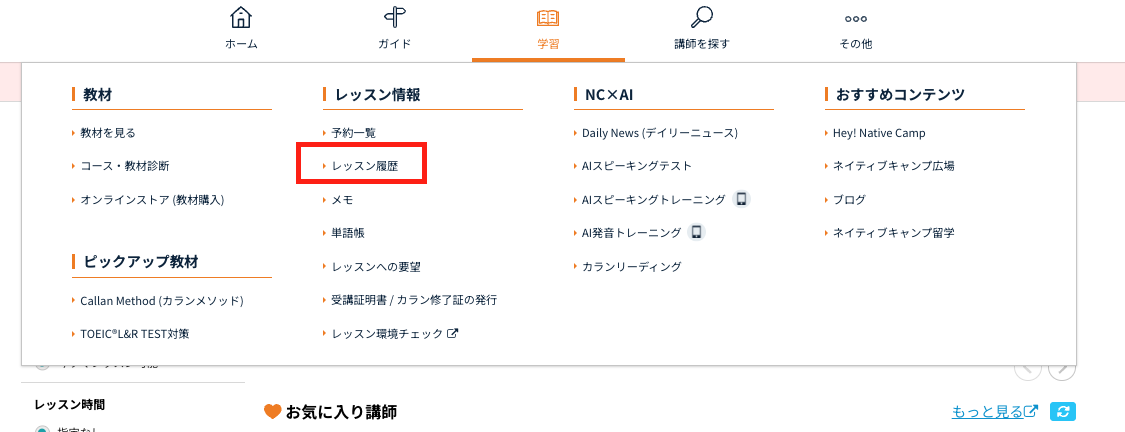 非表示にした講師は「お気に入り / 非表示」より表示を戻すことが可能です。