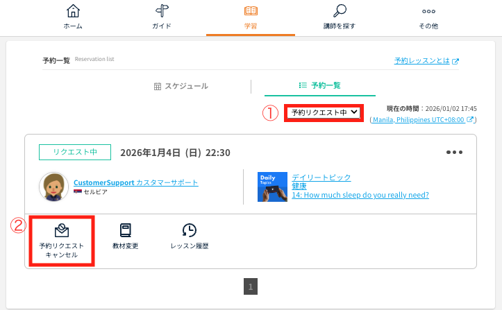 ※一度キャンセルされた予約リクエストは、同一の講師・同一の時間帯では再度リクエストすることができません。