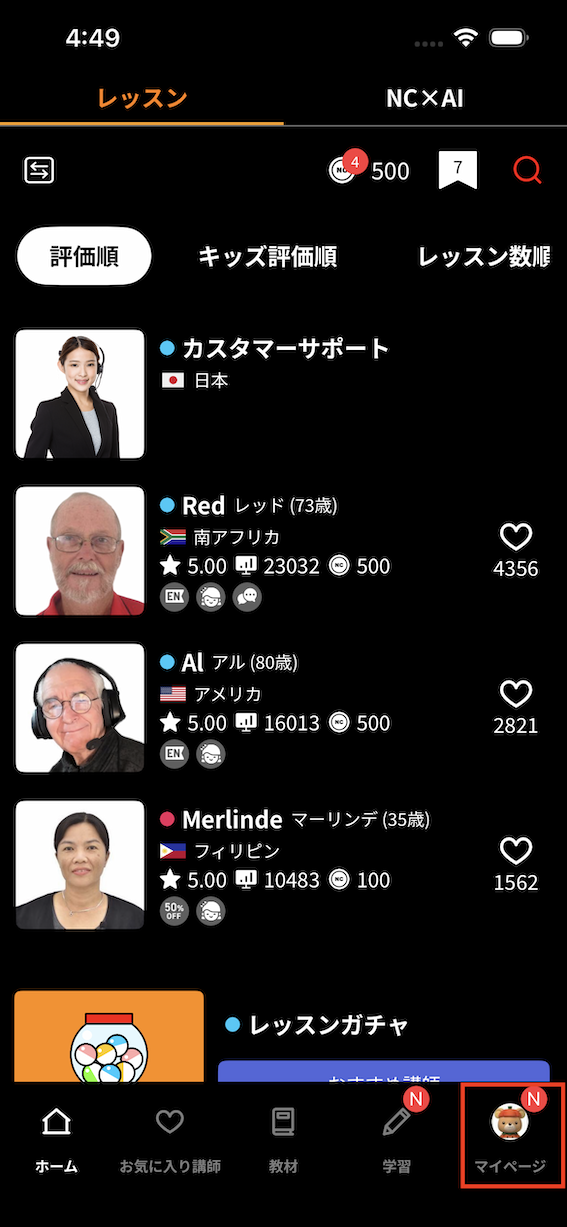 代替講師をご希望の際にも、予約レッスンに使用したコインは全て返還されます。