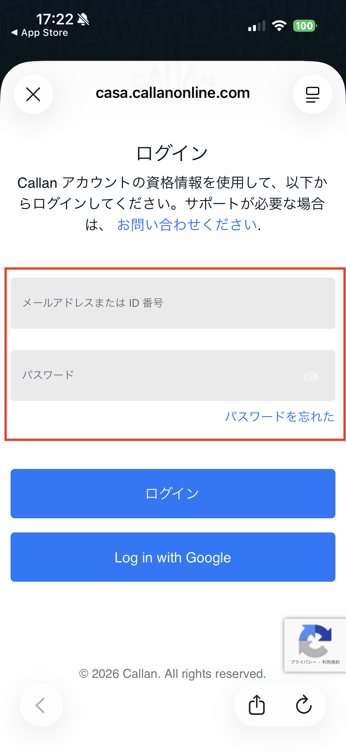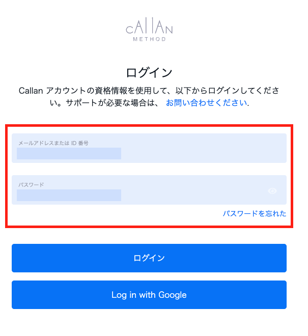 2. ログイン画面にて、カランユーザー登録時のメールアドレスとパスワード
