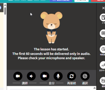 時間内に接続が確認されれば、レッスンが再開されます。