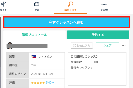 「今すぐレッスン」ボタンを押します