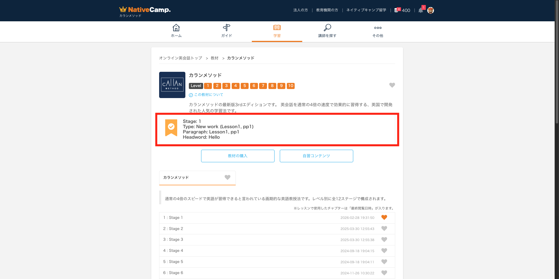 ✔ カランは「教材」と「コース」で進捗が別管理です