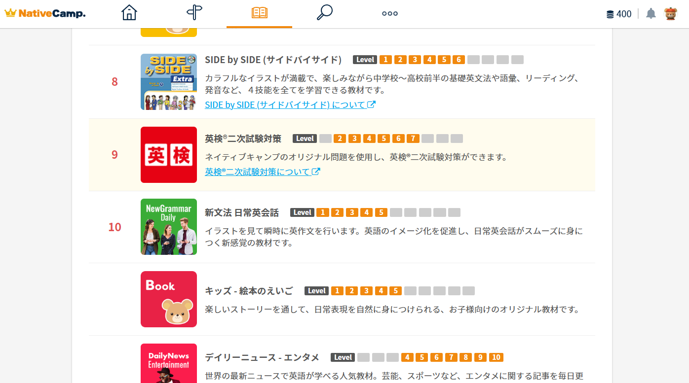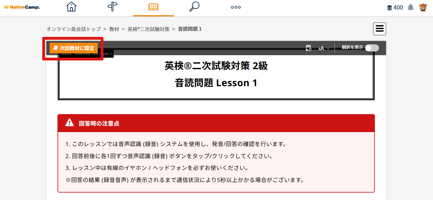 はい、ネイティブキャンプでは英検®二次試験(面接)の対策ができる専用教材をご用意しております。