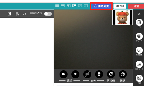 押下後、そのまま別の講師へ切り替わります