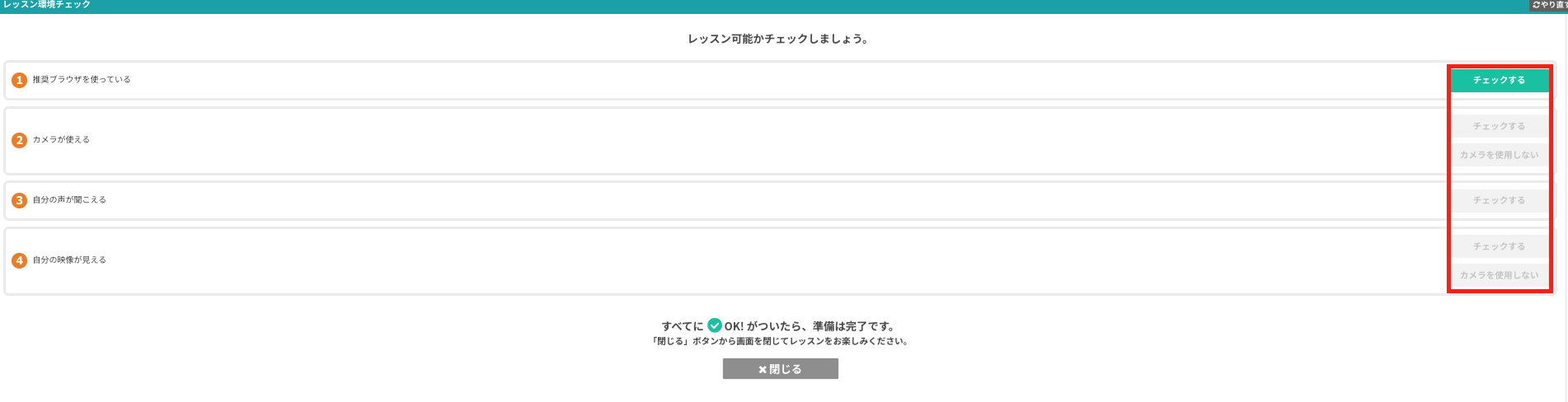 カメラを含むすべての項目が「OK」になれば、レッスンで問題なく使える可能性が高いです。
