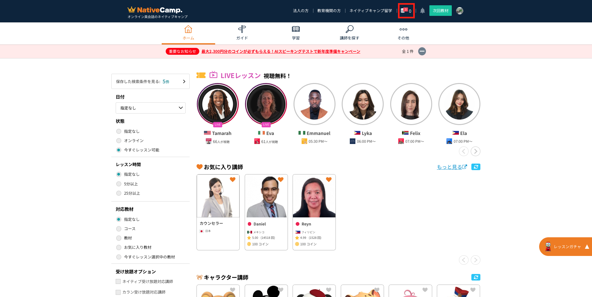 特別優待プランの利用期間を過ぎているか、「今すぐレッスン」の上限回数に達しているため、ご利用いただけません。