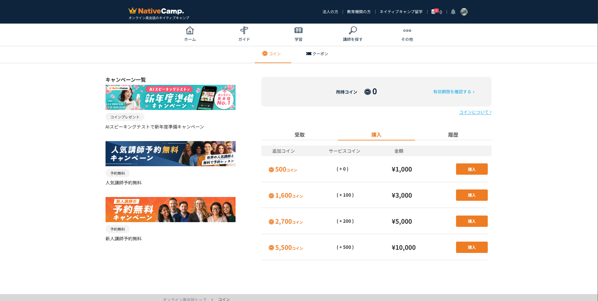 代替講師をご希望の際にも、予約レッスンに使用したコインは全て返還されます。