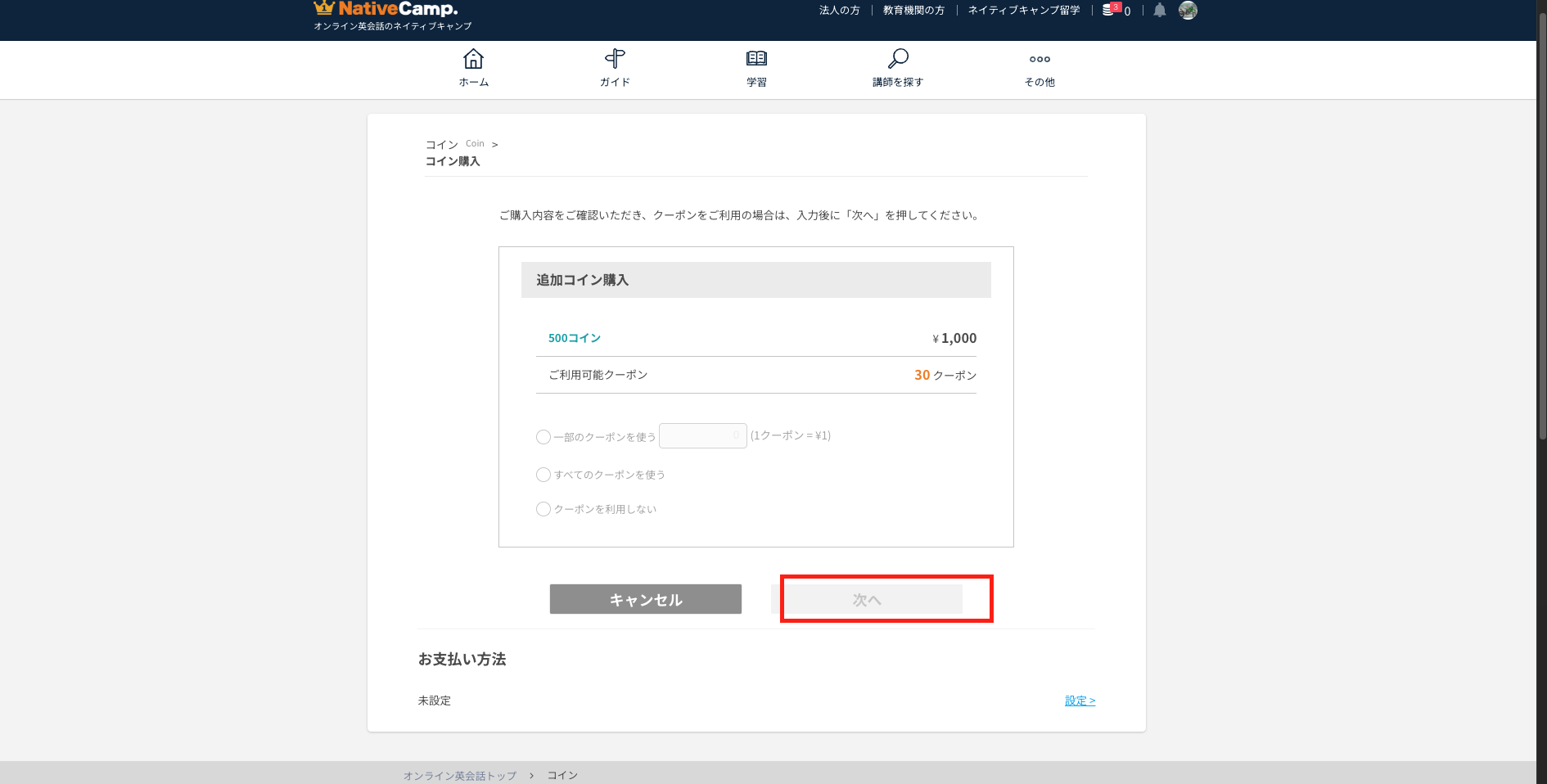 ※コインの購入はWEBサイトからのみ可能です。アプリからは購入できませんのでご注意ください。