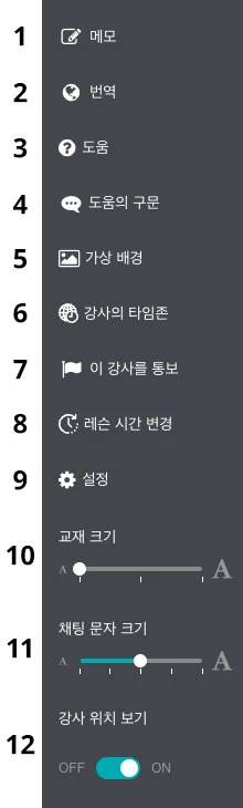 수업 중 수강자와 강사의 발화량 비율이 표시됩니다. 발화량의 바로미터는 2분마다 갱신되어 표시됩니다.