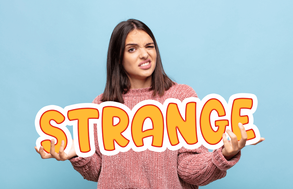 「strange」代表「奇怪的、不尋常的、奇妙、陌生的、神秘的」。一起使用的動詞是feel和have,比如「feel strange」或「have a strange feeling」。表達我們對陌生或未知事物所感到的不適。