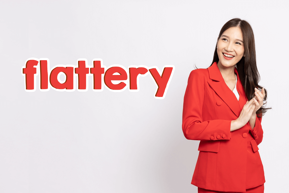 它是一個名詞,動詞形式則是“flatter”,也是同樣的意思,請看下面例句用法。