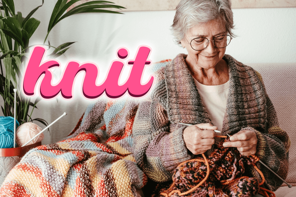 「Knit」 是動詞也是名詞,拼法是一樣的。動詞「to knit」代表「編織、綁在一起、連在一起、聚集在一起,起皺,折疊」。名詞「knit」則指「針織,針織產品」。