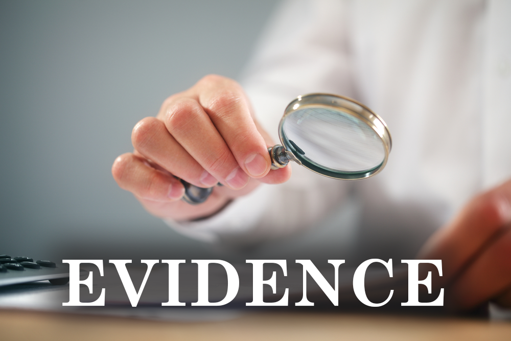 「evidence」也是指證據,但跟 proof略有不同。proof 是指絕對的證據,evidence則較弱。它的語感比較像用來證明某件事的文件或資料。