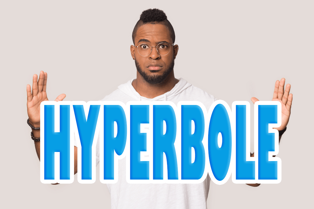 「Hyperbole」的發音為「 /haɪˈpɝː.bəl.i/」、並是「比喻表現」中用來大幅誇大,甚至到「不符合現實」的一種表達方式,而它就如其名所示,正是一種透過「誇飾法」來達到修辭效果的技法。