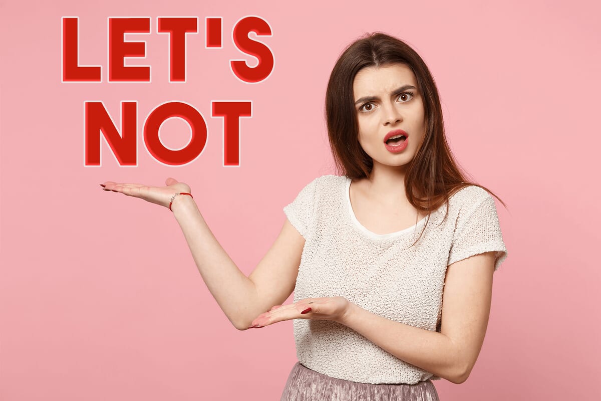 如上文可見,「let’s not」是一個用來「提議不要做某事」的英語表達、並會用於避免某件事發生、或是想抑制正在發生的某件事的情景之中。
