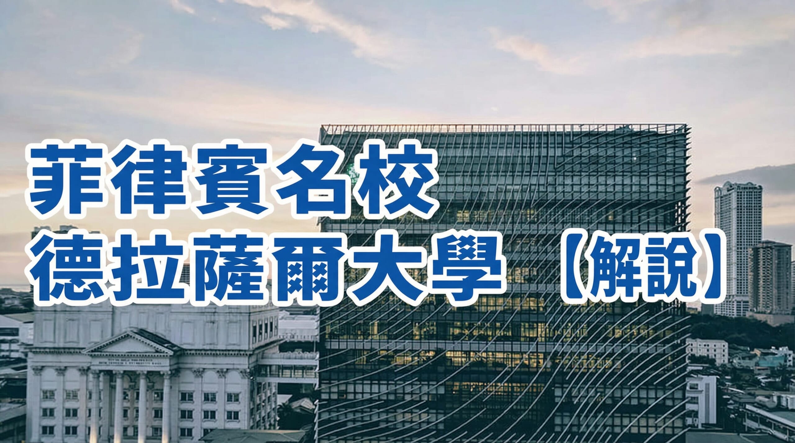 德拉薩爾大學,這座擁有超過100年歷史的菲律賓名門大學,持續提供高教育水準與充實的學習環境。它除了重視天主教大學原本的傳統與價值觀維護,更致力於培育具有全球性視野的人才,其教育品質也獲得國際間高度評價。