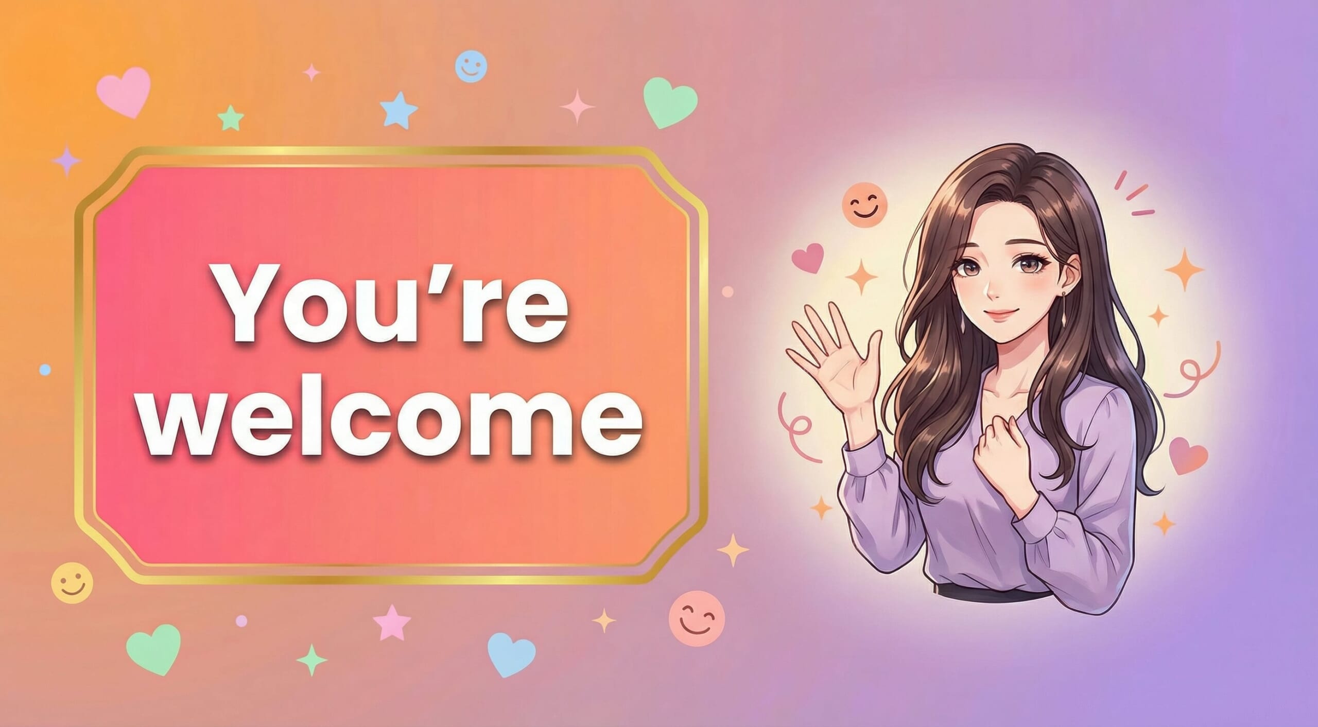 「You’re welcome!」這個短語是非常正式的英語表達方式。